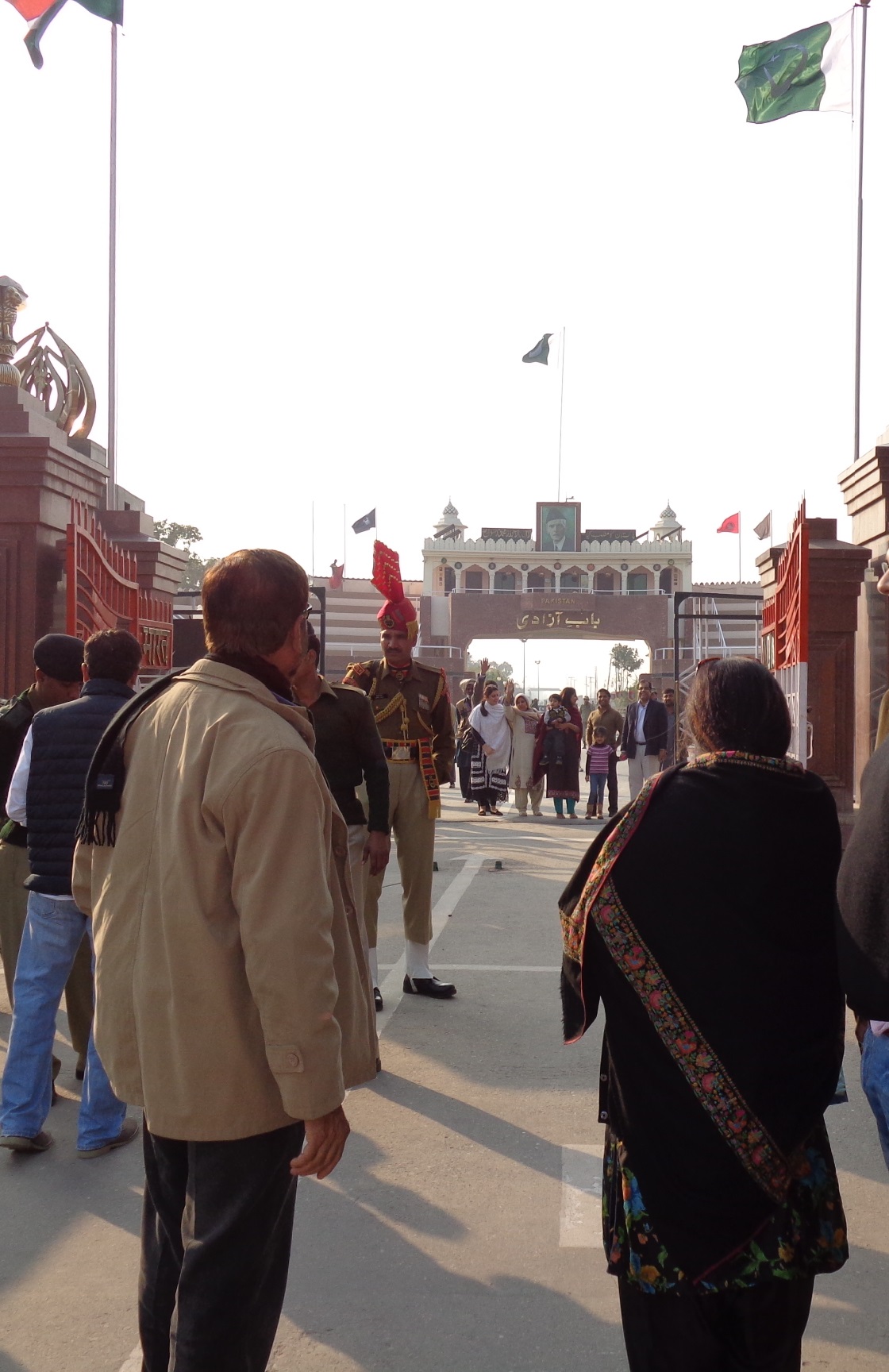 We were one of the last passengers to cross the border. After the immigration counters close, and the gates are closed between the two countries, the Wagah border turns into a site for unabashed chauvinism The ceremony is a huge tourist attraction and slowly the stands on both sides filled up with thousands of people. We decided to stay on and watch the ceremony.